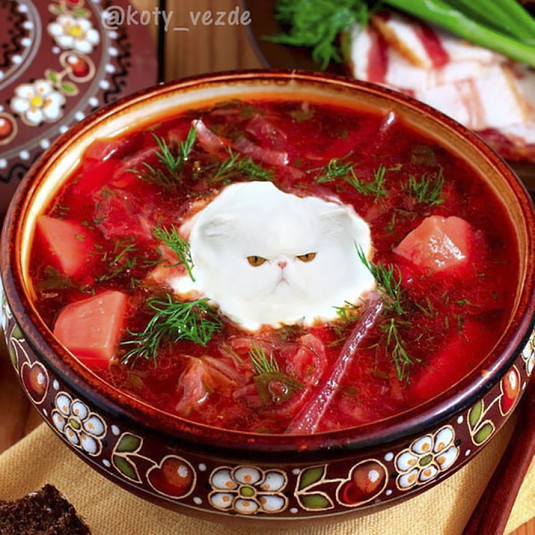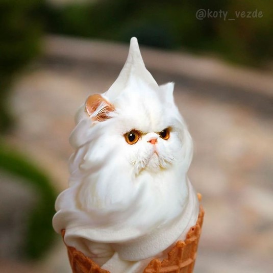 Авторы профиля под названием «Коты везде» создают забавные коллажи, в которых они добавляют кошачьи морды окружающим предметам, начиная с ежиков и заканчивая продуктами питания. Получается жутко забавно.