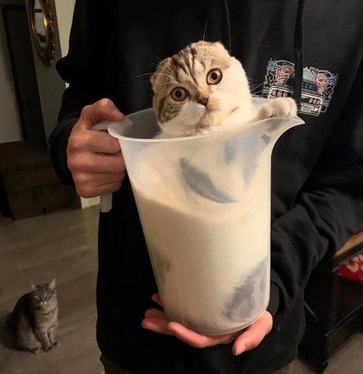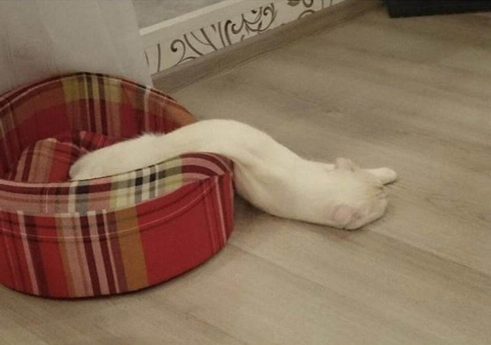 Форма и объем емкости вторичны, пушистых мурлык это совершенно не волнует. И самое интересное, что им так вполне удобно. Вот бы люди так умели!
