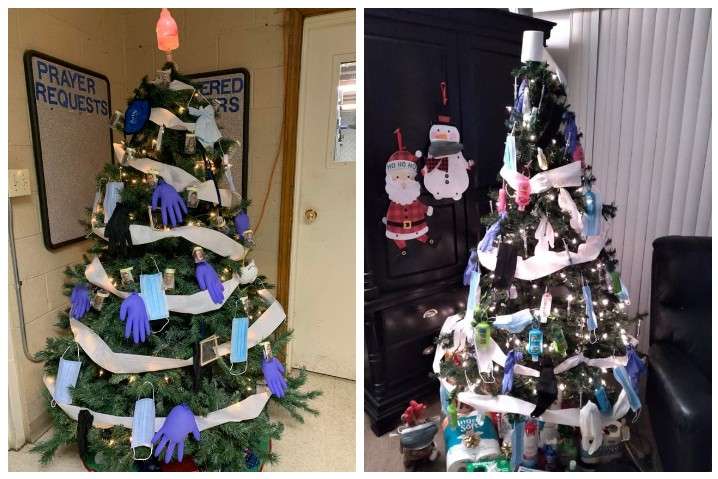 Как люди украшают елки в 2020 году. В ход идут маски, перчатки и туалетная бумага