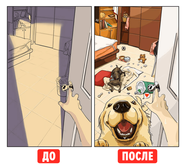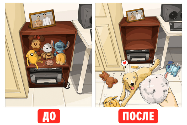 Итак, представляем вашему вниманию 9 комиксов о жизнь до и после появления собаки в доме.