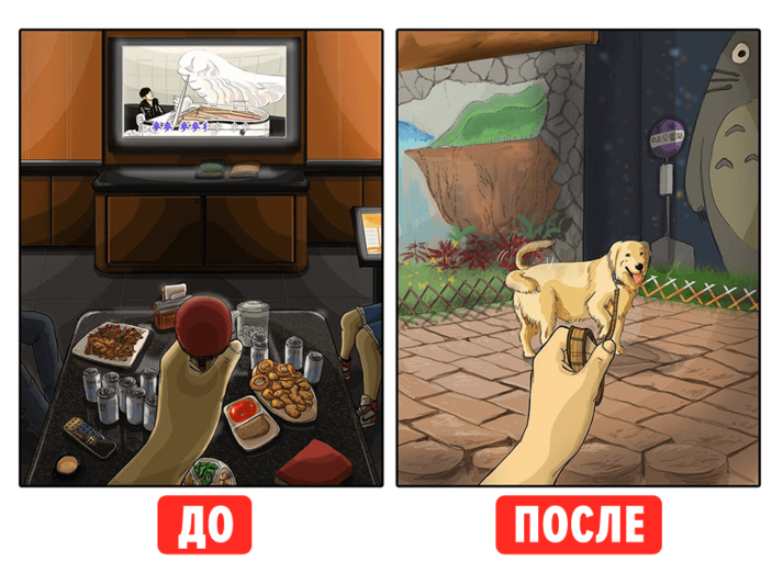 Обладатель золотистого ретривера по кличке «Маймай», Джон, решил наглядно показать, как изменилась его жизнь после появления четвероногого друга.