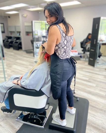 Справа показана ее нынешняя внешность — наполненные филлерами щеки и губы, новая форма носа, голубые глаза и ярко-розовые волосы.