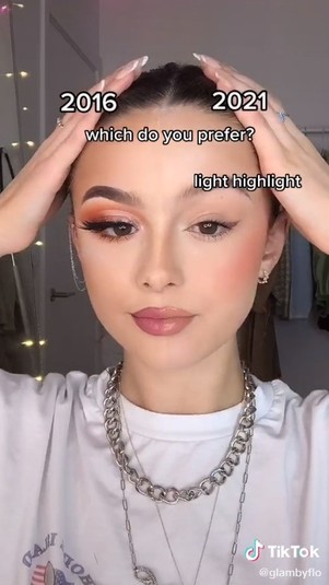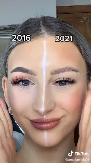 Пользовательница под ником keilidhmua рассказала, что сейчас она пользуется полупрозрачной основой для макияжа, а раньше она любила плотные и матовые тональные основы. В 2021 году девушка пользуется куда меньшим количеством консилера, а также она сменила мощный контуринг и больше количество хайлайтера на румяна. Также keilidhmua отметила, что раньше в моде были яркие брови с четким контуром, а сейчас — естественные и пушистые. Яркие блестящие тени и огромные искусственные ресницы сменили естественные цвета и растушеванная стрелка. Девушка отказалась от матовой помады и перешла на простой блеск для губ.