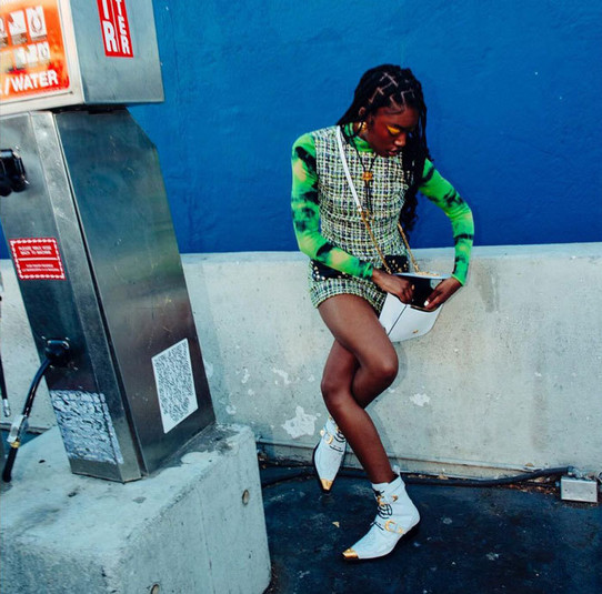 На фото знаменитость предстала перед объективом камеры в обтягивающем платья в полоску с вырезами – такой наряд выгодно подчеркнул фигуру певицы.
