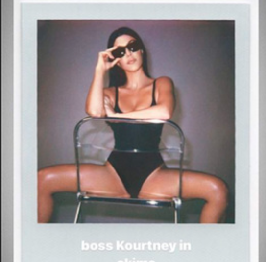 В сторис своего Instagram 41-летняя знаменитость сделала репост фотографии, на которой она запечатлена в латексном слитном купальнике черного цвета собственного бренда Ким Кардашьян Skims. На кадре модель сидит на прозрачном стуле с раздвинутыми ногами. Ее образ дополнили черные солнцезащитные очки.