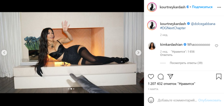 Старшая сестра телезвезды и предпринимательницы Ким Кардашьян Кортни снялась полуобнаженной в неприличной позе и разгневала фанатов. Соответствующие комментарии появились на Daily Mail.