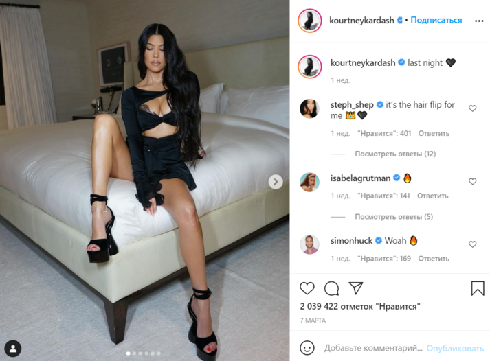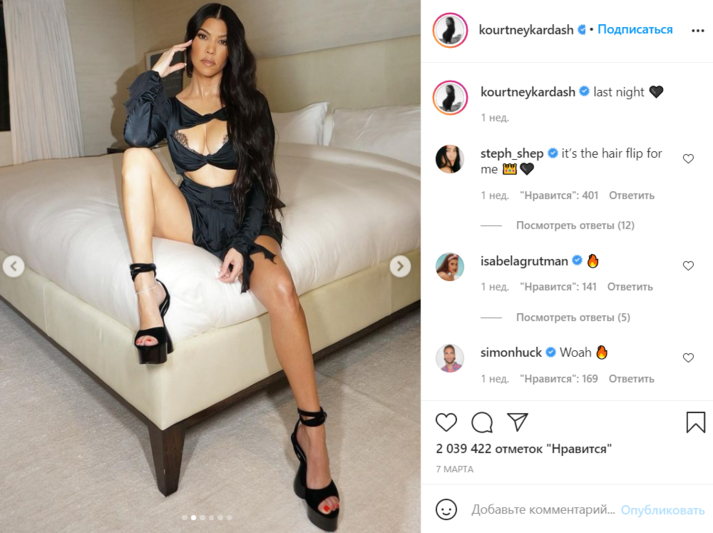 Пользователи сети раскритиковали описанный снимок телезвезды и пристыдили ее в комментариях. «Я так хочу, чтобы Кардашьян перестали выставлять свои вагины напоказ», «Тебе не стыдно? Сомкни ноги, подумай о своих несчастных детях», «Делает что угодно, лишь бы оставаться в тренде. Остановись. Эта поза унизительна для женщин», «Она является отвратительным примером подражания для своих детей», «Сомкни ноги. Никакого чувства достоинства», — негодовали они.