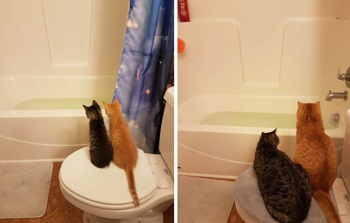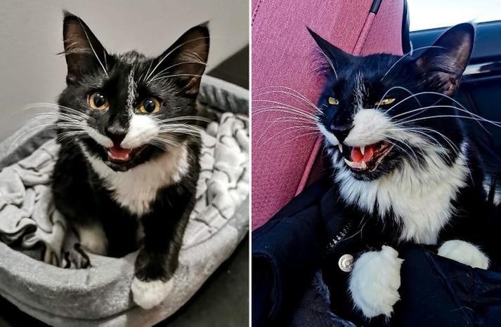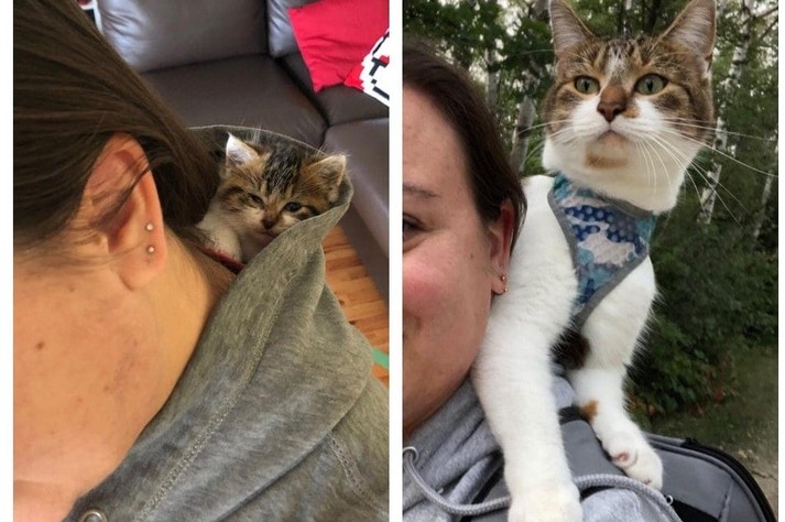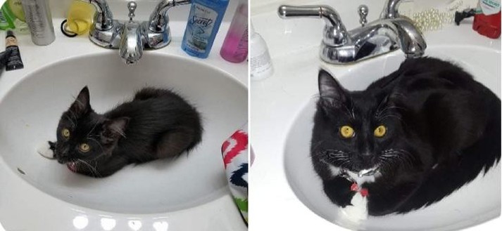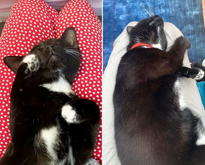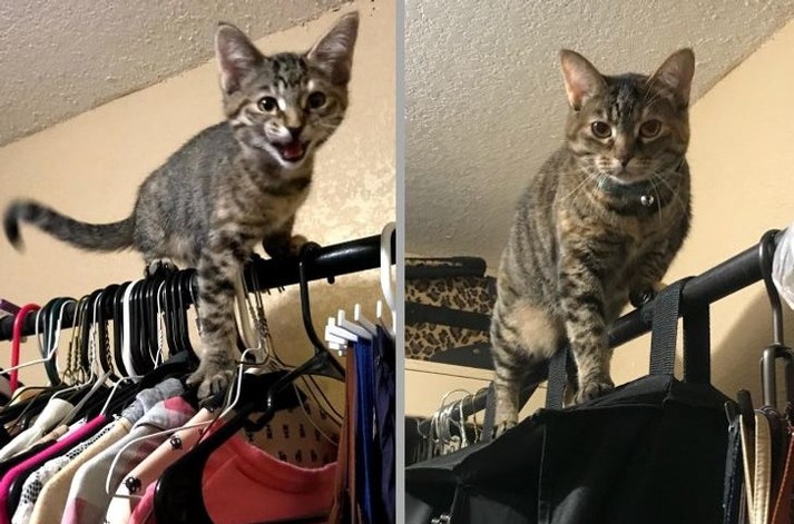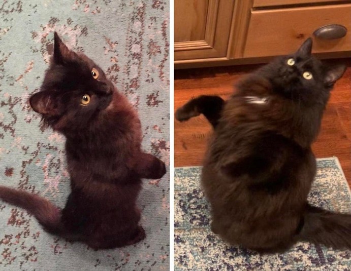 «Аксель больше не помещается в капюшон, но все еще любит на мне путешествовать», «Уже полтора года соблюдают традицию уютного сна после прогулки», «Локи думает, что вода — это кошачья стихия», «Наша собака всегда запрыгивает на эту скамейку во время прогулок», «Первое фото — коту 4 месяца, на втором ему два года», «И ему все еще есть, что сказать!», - шутят в комментариях пользователи сети.
