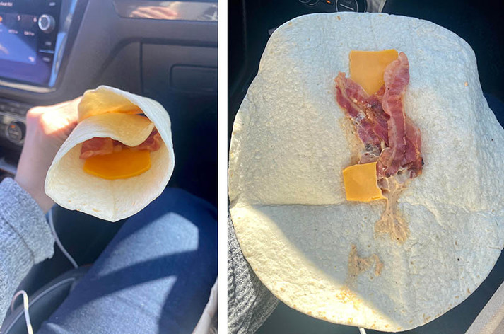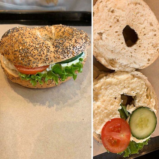 «Такими бутербродами только врагов кормить», «Оно вкусное, но выглядит так, будто кто-то уже его ел», «Хуже этой пицца была только пицца в нашей школьной столовой», «Вместо начинки – пустая дырка. Как так?», - комментируют фото пользователи сети.
