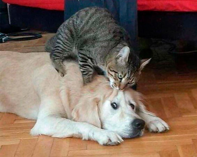 Когда коты издеваются над собаками: курьезные фото