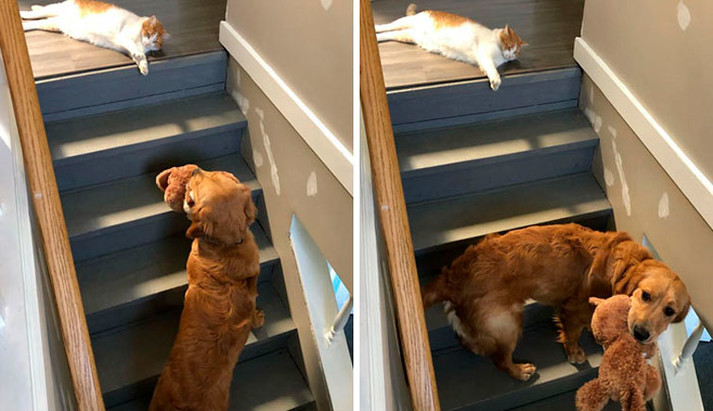 Не всегда коты с собаками умеют жить в согласии.