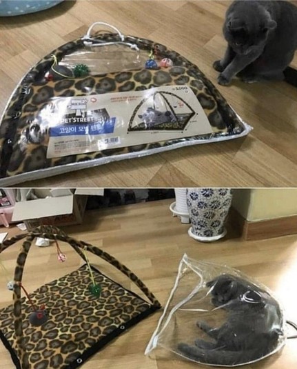 «Когда тебе устроили удобную лежанку, но она не подходит по размеру», «Да, это и правда дверца для кота, но в этот раз можно было бы найти и способ попроще», «Новая и очень дорогая площадка для игр?», «Мой кот убежден, что это подходящая поза для сна», - комментируют фото пользователи сети.