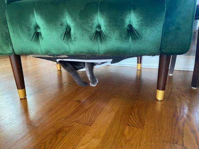 «Люстра — самое подходящее место для кота», «Гигантское существо, запертое в чьем-то доме, или кукольный домик с любопытным посетителем? Вам решать», «Он решил прыгнуть на стол и использовать салатник как лоток», «Если долго всматриваться в лампу, лампа тоже посмотрит на тебя», «Когда знаешь, как забраться на столб, а как слезть — нет», - шутят в комментариях пользователи сети.