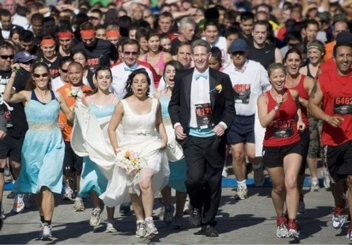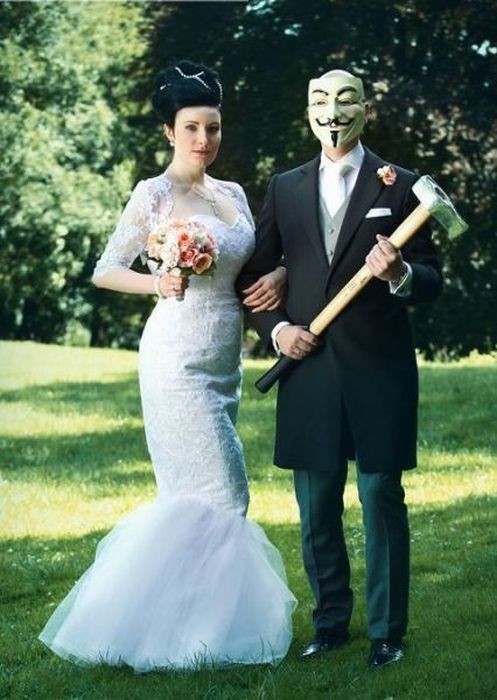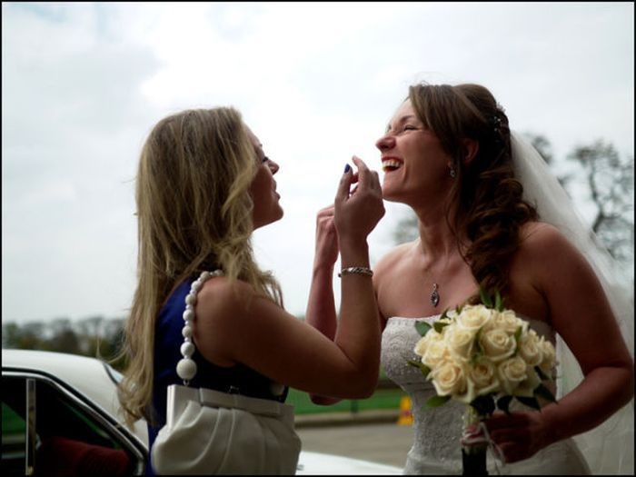 И, поскольку, ничто не в силах омрачить такой веселый и задорный праздник, то пусть после просмотра этих прикольных свадебных фото и у вас поднимется и создастся праздничное настроение.