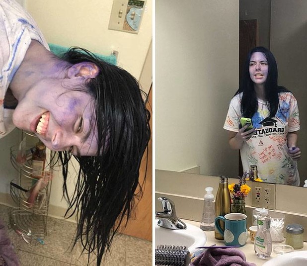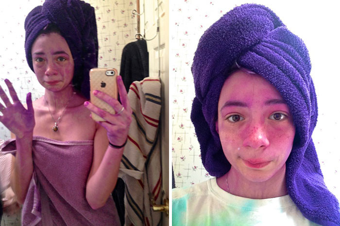 «Обесцвечивая волосы, девушка надела на голову пакет, не подозревая, что принт на полиэтилене может отпечататься. Но фото она уже без пакета», «Никогда не знаешь, на что у тебя будет аллергия», «Как ваши студенческие годы? Моя соседка по общаге превратилась в смурфетту», - комментируют фото пользователи сети.