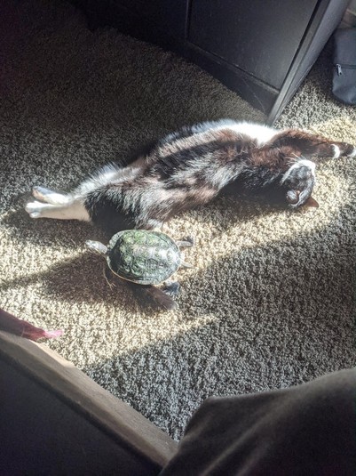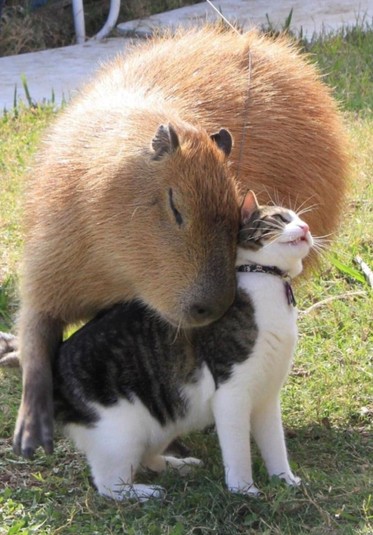 Что и умеют делать домашние питомцы, так это быть преданными и верными товарищами. И стоит заметить, что их дружелюбие распространяется не только на их собственных владельцев, но и на других хвостатых товарищей из животного мира.