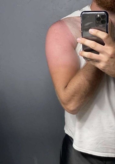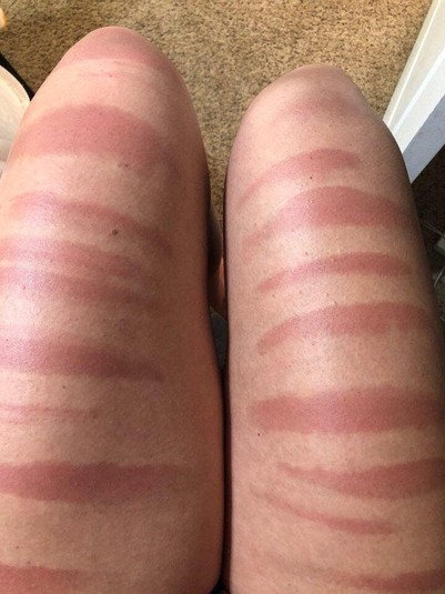 «Меньше часа на солнце с SPF 50 и 70 на всем теле», «Мой друг не стал просить помощи в нанесении солнцезащитного крема, вот и результат», «Ноги моей кузины после дня на солнце в рваных джинсах», «Пошла плавать и не нанесла водостойкий солнцезащитный крем», «Линии моего загара похожи на неаполитанское мороженое», - комментируют фото пользователи сети.