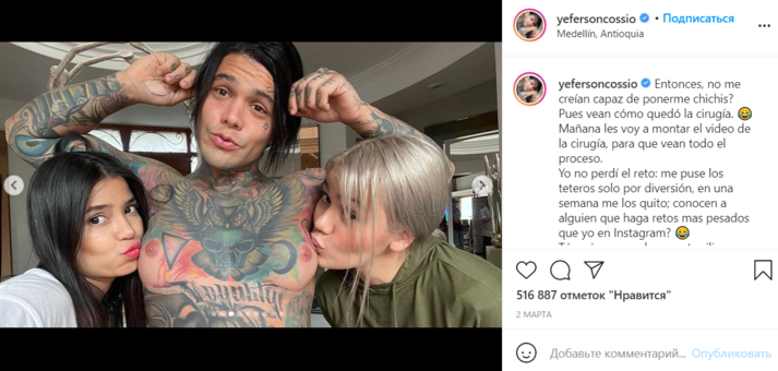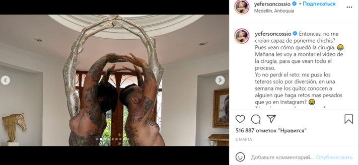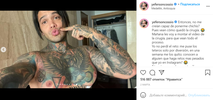 Колумбийский блогер из любопытства увеличил себе грудь и поделился результатом (фото)
