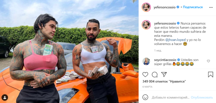 Блогер и певец из Колумбии Йеферсон Кассио добился большой популярности благодаря своим пранкам и различным рискованным и диким выходкам. В этот раз он поспорил с мужем сестры о том, что сможет быстрее него набрать три миллиона подписчиков, и Джоан согласился. Парни условились, что проигравший должен будет увеличить грудь при помощи имплантов, пишет Oddity Central.
