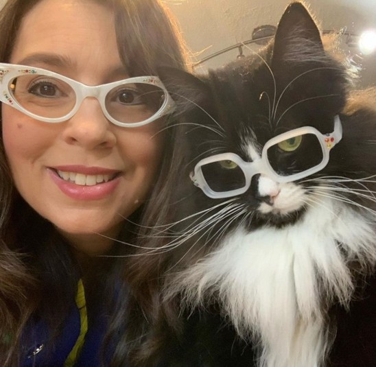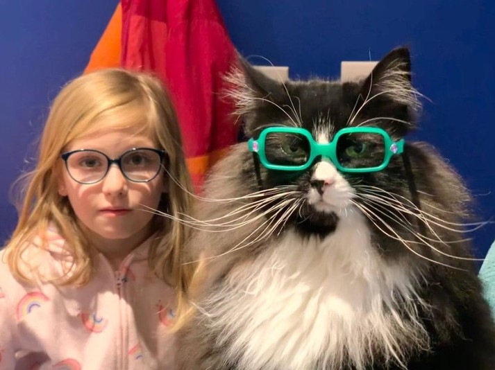Семья приютила кошку и даже нашла ей работу в качестве модели для очков