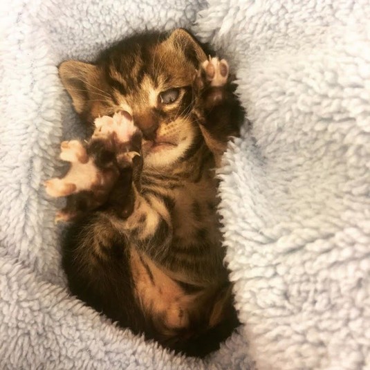 Котенка по кличке Кода нашли на одной из улиц Нью-Йорка и принесли в приют Animal Care Centers. Ему тогда было всего несколько недель и он был грязным, сильно истощенным и постоянно плакал, зовя маму.