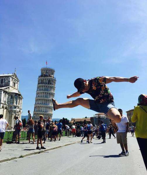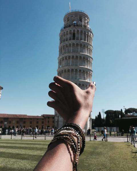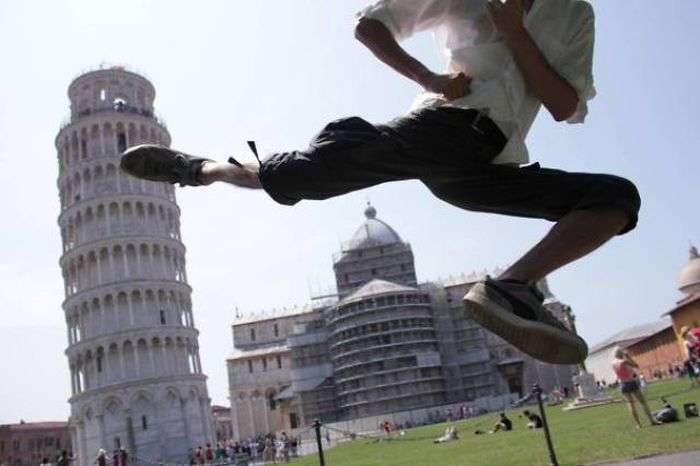 Туристы, посещающие итальянский город Пизу, чтобы взглянуть на знаменитую на весь мир Пизанскую башню, делают с ней фото на память, среди которых встречаются довольно забавные снимки.
