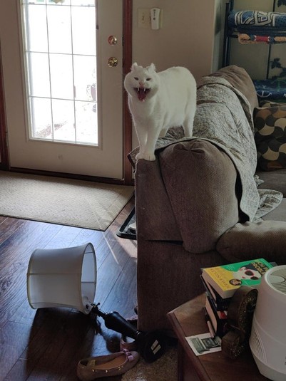 «Скинул лампу со стола и мяуканьем сообщает мне об этом», «Когда думаешь, что ты моль», «Мой отец купил кактус, чтобы Мингус не залезал на подоконник», «Чего он хочет? Воды? Еды? Чтобы его почесали? Можно угадывать сколько угодно, но он будет стоять так, пока не получит то, чего желает», - шутят в комментариях пользователи сети.