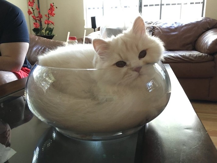 Кажется, коты, кошки и котята живут по каким-то своим правилам, которые не понять глупым людям. Питомцы презрительно относятся не только к тому, что говорят им люди, но и к правилам физики. Ведь как еще объяснить тот факт, что котики иногда ведут себя прямо как жидкость и проявляют невероятные способности помещаться во все мыслимые и немыслимые места.