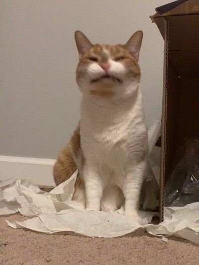 «Никто не любит, когда его фотографируют спросонья», «Разодрал всю коробку и ничего вкусного там не обнаружил», «Ей, это кого вы ко мне подселили? А меня даже не спросили!», «Кошки гуляют сами по себе, а не как собаки — на поводке», - комментируют фото пользователи сети.