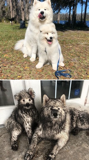 «Он хотел, чтобы я вышел на улицу и поиграл с ним в мяч», «Пушистый подражатель», «Мы просто хотели красивое семейное фото», «Когда оставил собак на пять минут», «Один наш пес использует другого как лошадь», - комментируют фото пользователи сети.