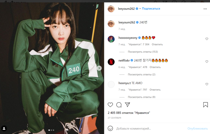 После того как на Netflix вышел сериал «Игра в кальмара», главные герои тут же стали звездами мирового масштаба. Так, на модель Чон Хо Ен, которая сыграла воришку, за полтора месяца в «Инстаграме» подписалось больше 22 миллионов человек. А вот другая актриса, Ли Ю-ми, такой популярности так и не снискала. Кажется, что это несправедливо, ведь ни игрой, ни внешностью девушка ничуть не уступает тем, кто сейчас нарасхват.