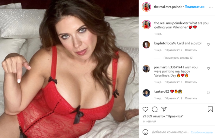 На OnlyFans она известна как миссис Пойндекстер. На снимках Тиффани обычно позирует в нижнем белье, выполняя домашние дела. «Мы начали в сентябре 2019 года, и никто об этом не знал. Ни друзья, ни семья, ни кто-либо еще. Это был сексуальный секрет между мной и мужем, его это забавляло», — пояснила модель.