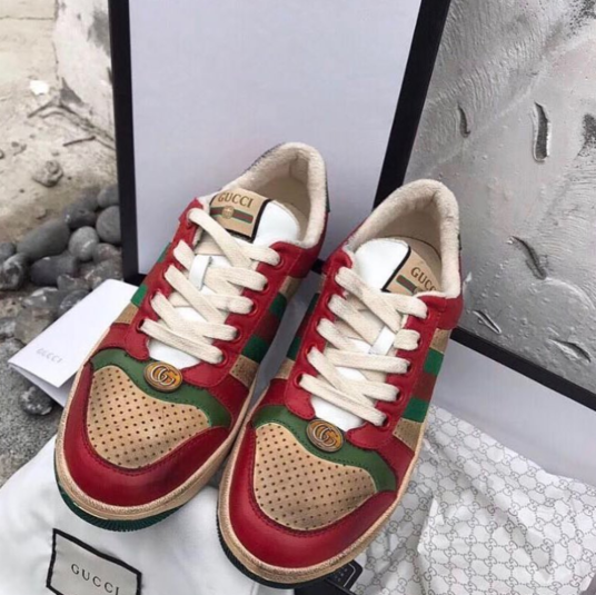 Недавно модный дом выпустил кроссовки Cruise 2019, которые украшены красно-зелёными фирменными полосками компании. Но это не главное – внешний вид обуви совсем не похож на новую. Именно к этому стремился производитель, чтобы кроссовки имели загрязненный и потертый от старости вид.