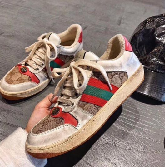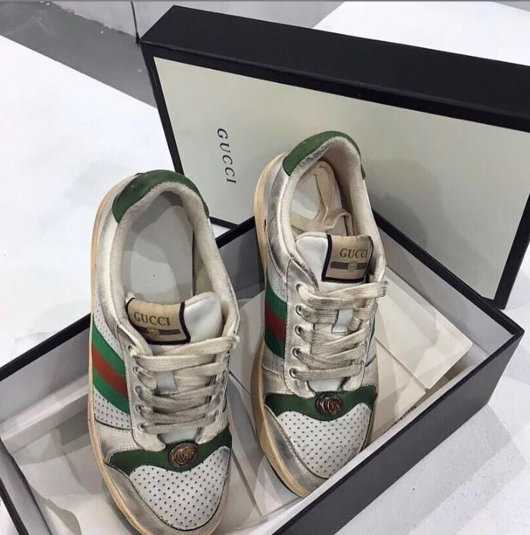 Дизайнеры Gucci признается, что на создание образа их вдохновил спортивный стиль, который был популярен в 1970 годах. Но это только внешне обувь грязная и старая, цена, которая на нее установлена, ничуть не выдает времени, а скорее наоборот, намекает на будущее. За одну пару просят 870 долларов.