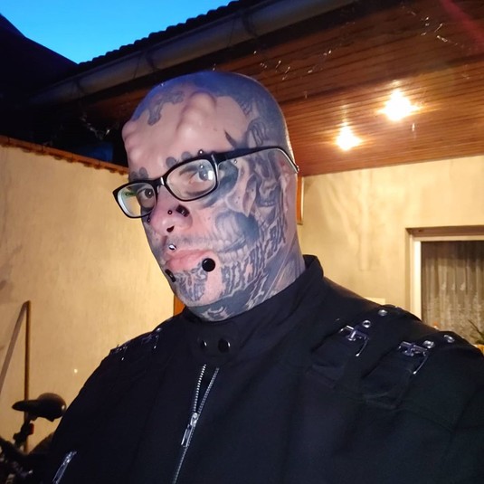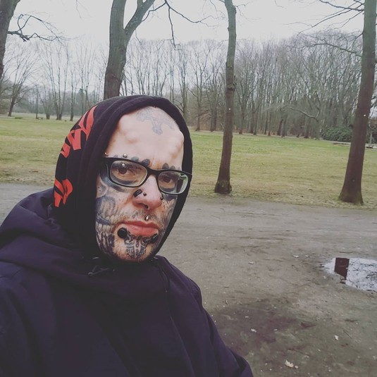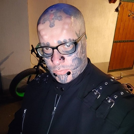 39-летний Сандро (Sandro), более известный в соцсетях как Mr Skull Face, потратил более шести тысяч фунтов стерлингов на модификации своей внешности. Так, помимо десятка татуировок по всему телу и пирсинга, герой материала вставил ряд имплантов в лоб, предплечье и руку. Кроме того, хирургическим путем ему вживили в запястье чип для бесконтактной оплаты, а также сделали операцию по разделению языка и удалили оба уха. Известно, что он хранит отрезанный орган в банке.