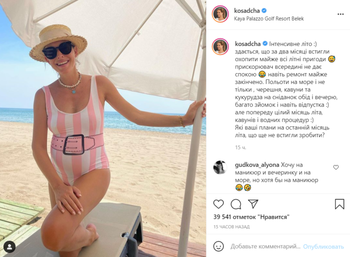«Интенсивное лето! Кажется, что за два месяца успели охватить почти все летние приключения. Ускоритель внутри не дает покоя, даже ремонт почти закончен. Полеты на море и не только, черешня, арбузы и кукуруза на завтрак обед и ужин, много съемок и даже отпуск! Но впереди целый месяц лета, арбузов и водных процедур», — поделилась звезда.