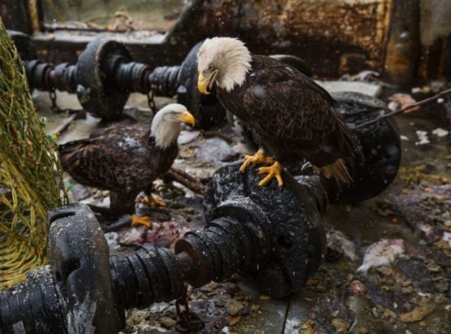 Жители города Датч Харбор на Аляске вот уже не протяжении 14 лет вынуждены терпеть выходки орланов, которые стали так называемыми дотационными хищниками. Около 500 птиц, поселившихся на ближайших островах, предпочитают добывать пищу на свалках, фермах и рыболовных судах.