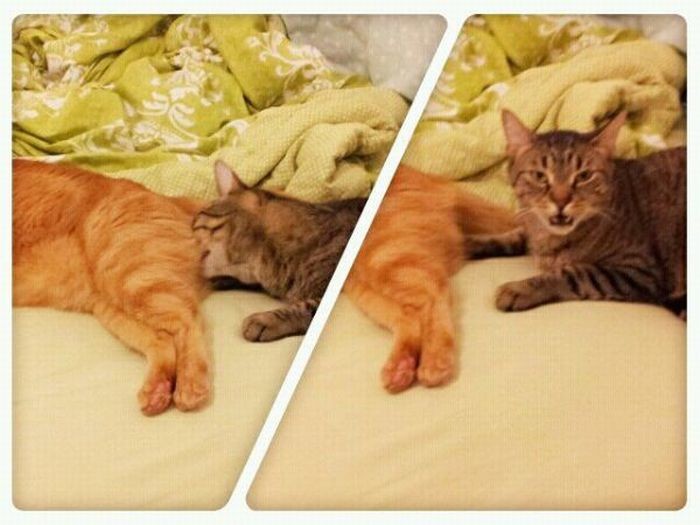 И вот тогда нужно срочно хватать камеру и фоткать то, что они внезапно учудили. Давайте посмотрим на несколько примеров кошачьей причудливости.