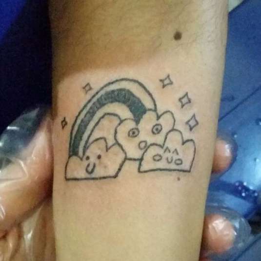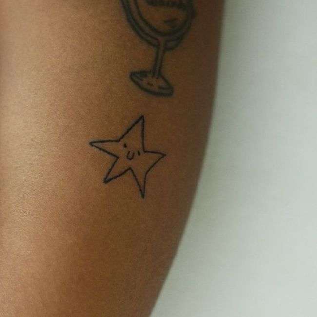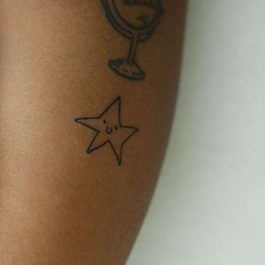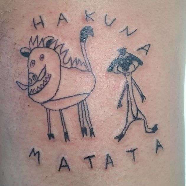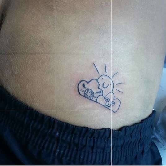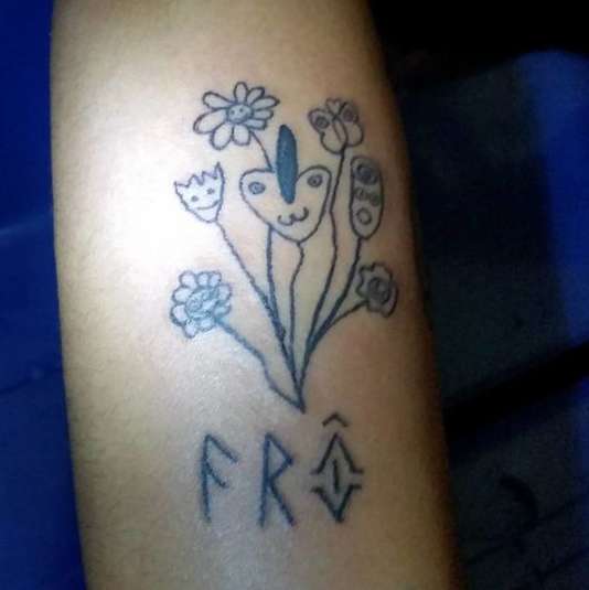 В своем тату-салоне девушка набивает татуировки, которые напоминают неумелые детские рисунки.