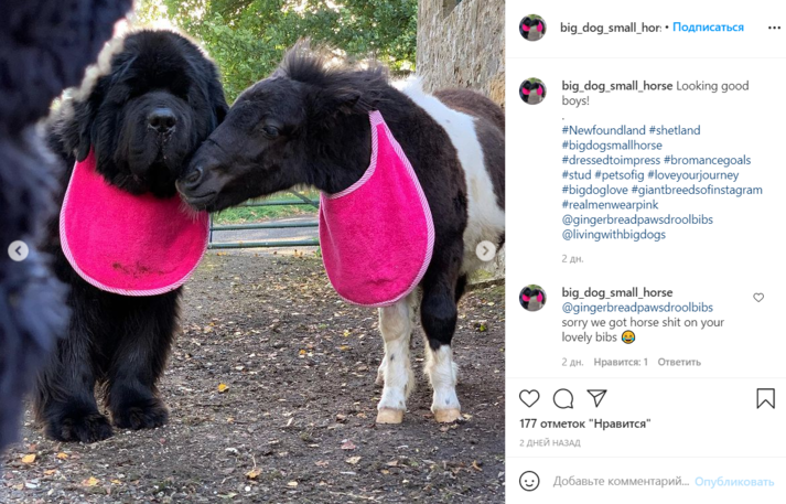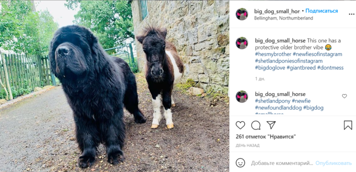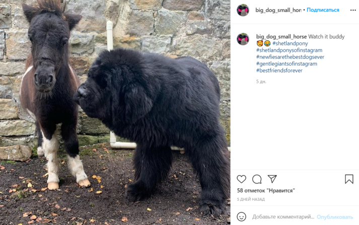 Четырехмесячный шетлендский пони Саттон и пятилетний ньюфаундленд Дом впервые встретились всего несколько дней назад, но сразу же стали лучшими друзьями. Теперь парочка практически неразлучна: пес и коняшка постоянно обнимаются, вместе гуляют, едят и даже спят.