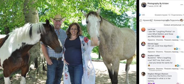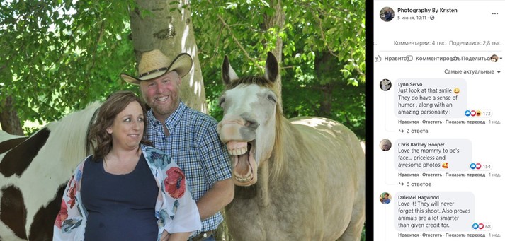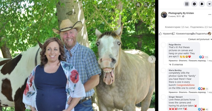 «Ох уж эти снимки! Я так смеялась над ними! Кто бы мог подумать, что, когда я скажу лошади улыбнуться, она действительно это сделает. Просто лучшая фотосессия для беременных», — написала Кристен Заффиро в своем посте на Facebook.