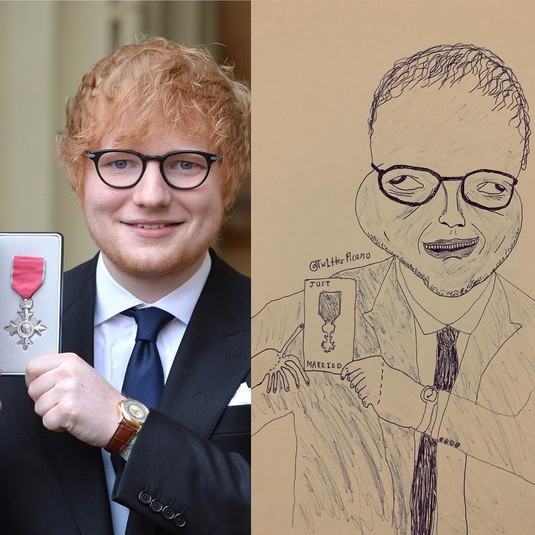 Парень рисует странные портреты знаменитостей. Выглядит очень плохо, но людям нравится