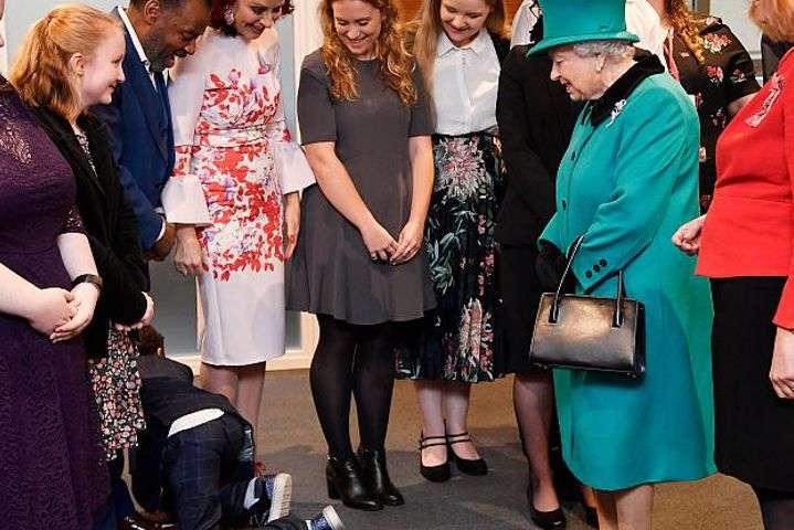 Девятилетний Натан Грант опустился на четвереньки и со словами «До свидания!» пополз в другую комнату. Королева в свою очередь в соответствии с правилами этикета сохраняла спокойствие. Родители мальчика объяснили, что он переволновался и не захотел быть в центре внимания.