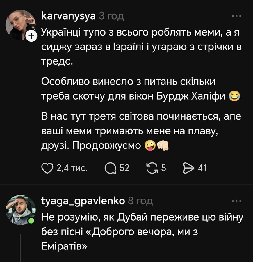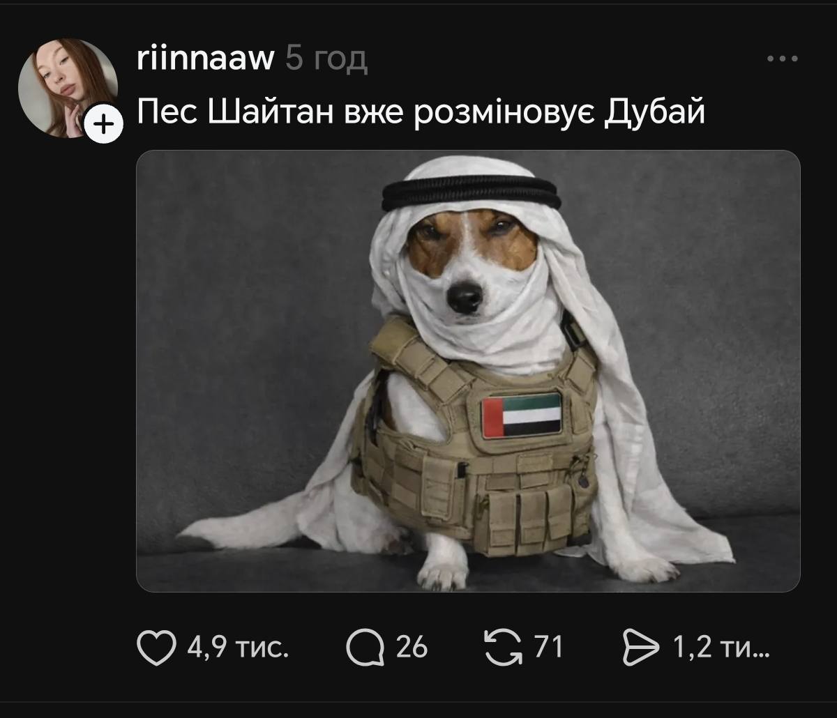«Пес Шайтан» і «Фортеця Бурдж Халіфа»: українці відреагували мемами на новини з Дубая
