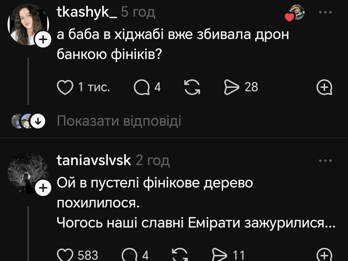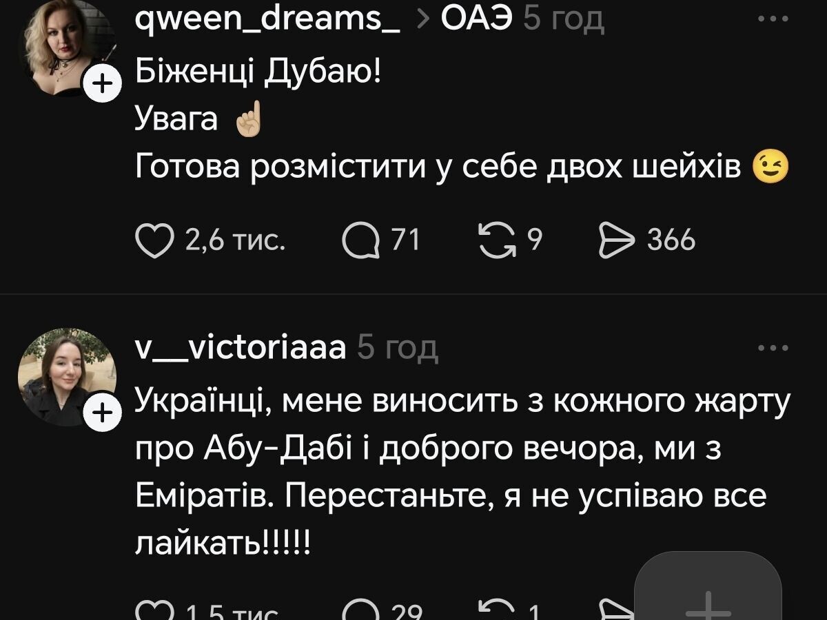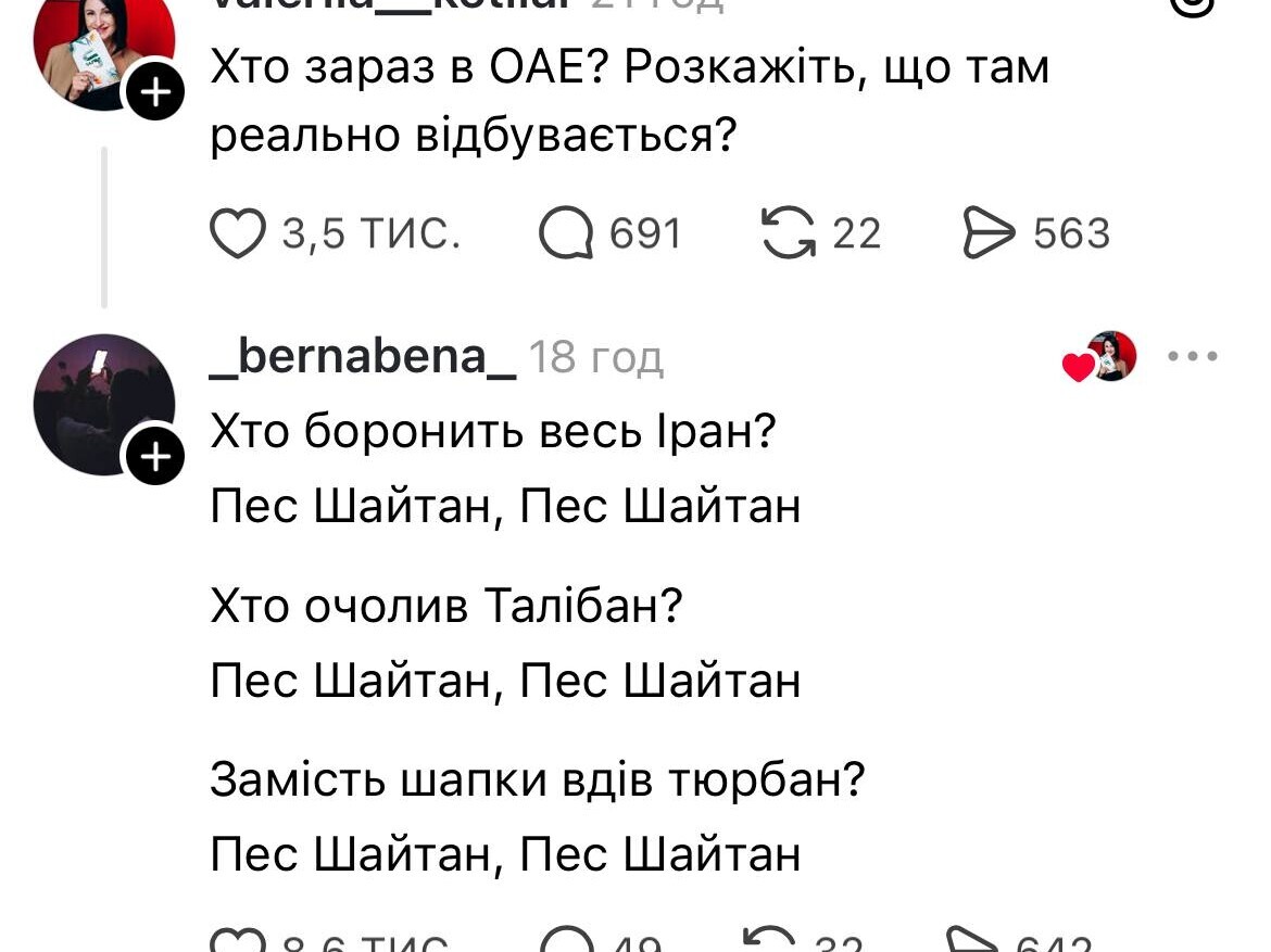 У мемах з'являються знайомі символи українського спротиву – Пес Патрон, вислів «Доброго вечора, ми з України» та інші культурні паралелі, які зрозумілі українській аудиторії, але в контексті Дубая.