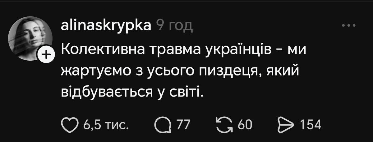 Люди не іронізують над самою трагедією, а радше щодо власного досвіду життя на початку повномасштабної війни