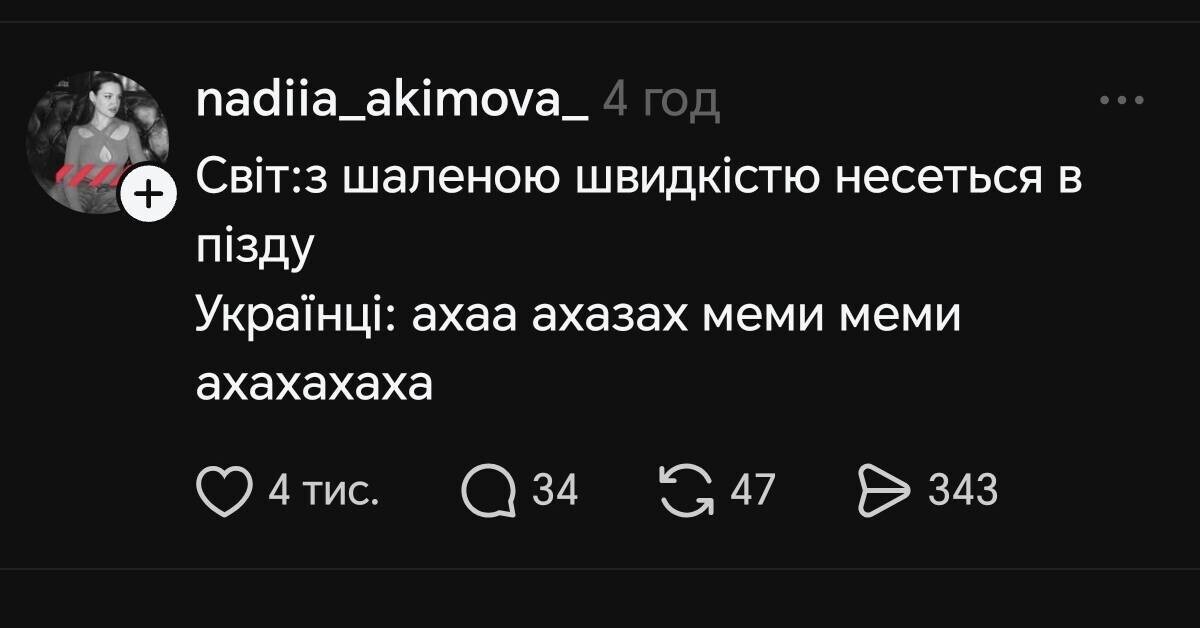 Люди не іронізують над самою трагедією, а радше щодо власного досвіду життя на початку повномасштабної війни.