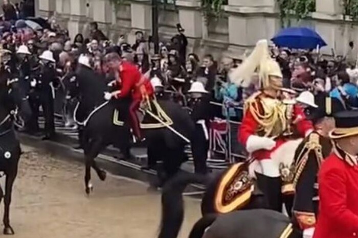 Вчора під час коронаційної ходи в Лондоні кінь одного з гвардійців перестав підкорятися командам і почав задкувати, прямуючи в натовп людей. Цей момент потрапив у кадр і був розтиражований у мережі.