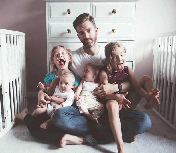 Вот он держит на руках орущих малышей, у которых режутся зубы, отмывает младшую в раковине от машинного масла после игр в гараже и объясняет старшей строение половых органов для урока по анатомии. А еще терпит, когда малыши, играя, бьют его по лицу, а девочки заплетают волосы в бантики. Вы, конечно, спросите, где их мама — она ведет свой аккаунт как «мама четырех девочек», который так же полон хлопот, суеты и абсолютного семейного счастья.
