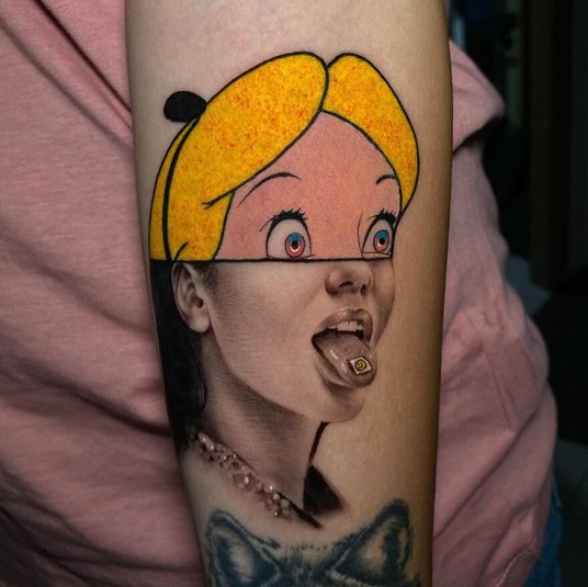 Подборка крутых татуировок с персонажами мультфильмов в неожиданном стиле